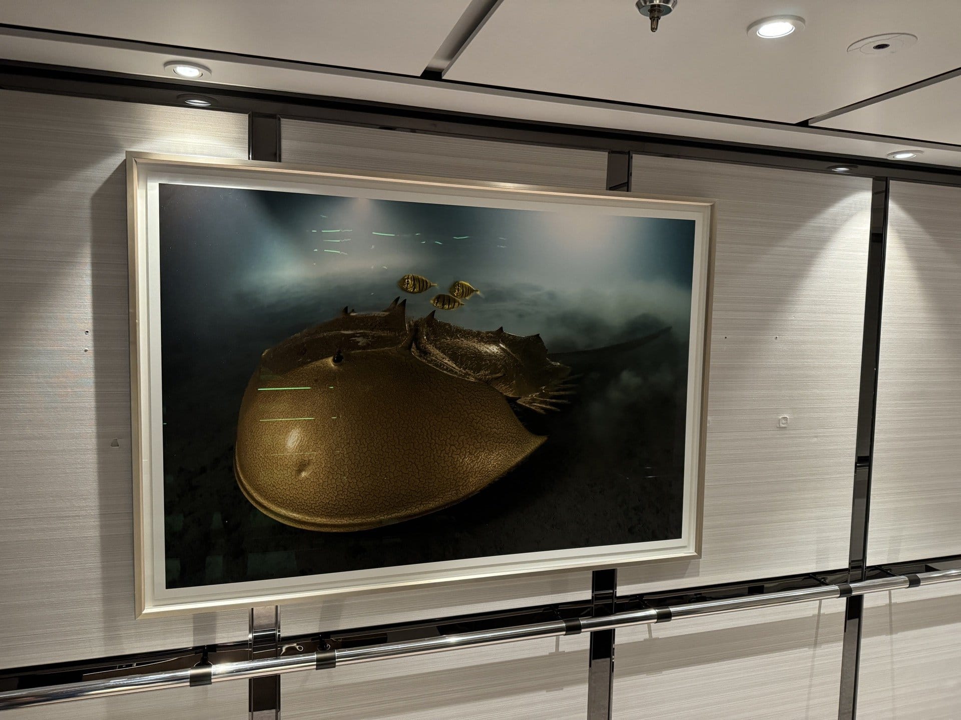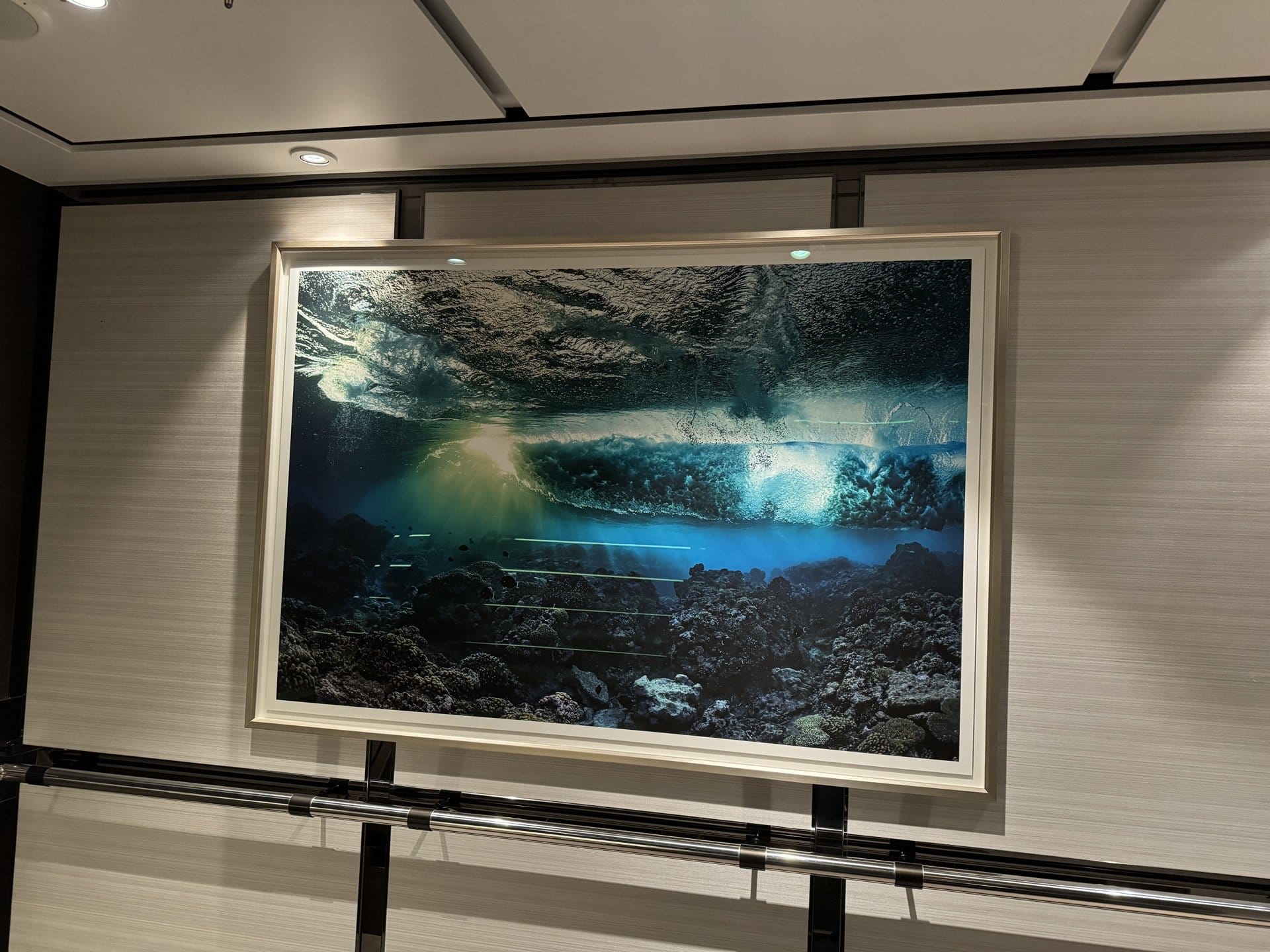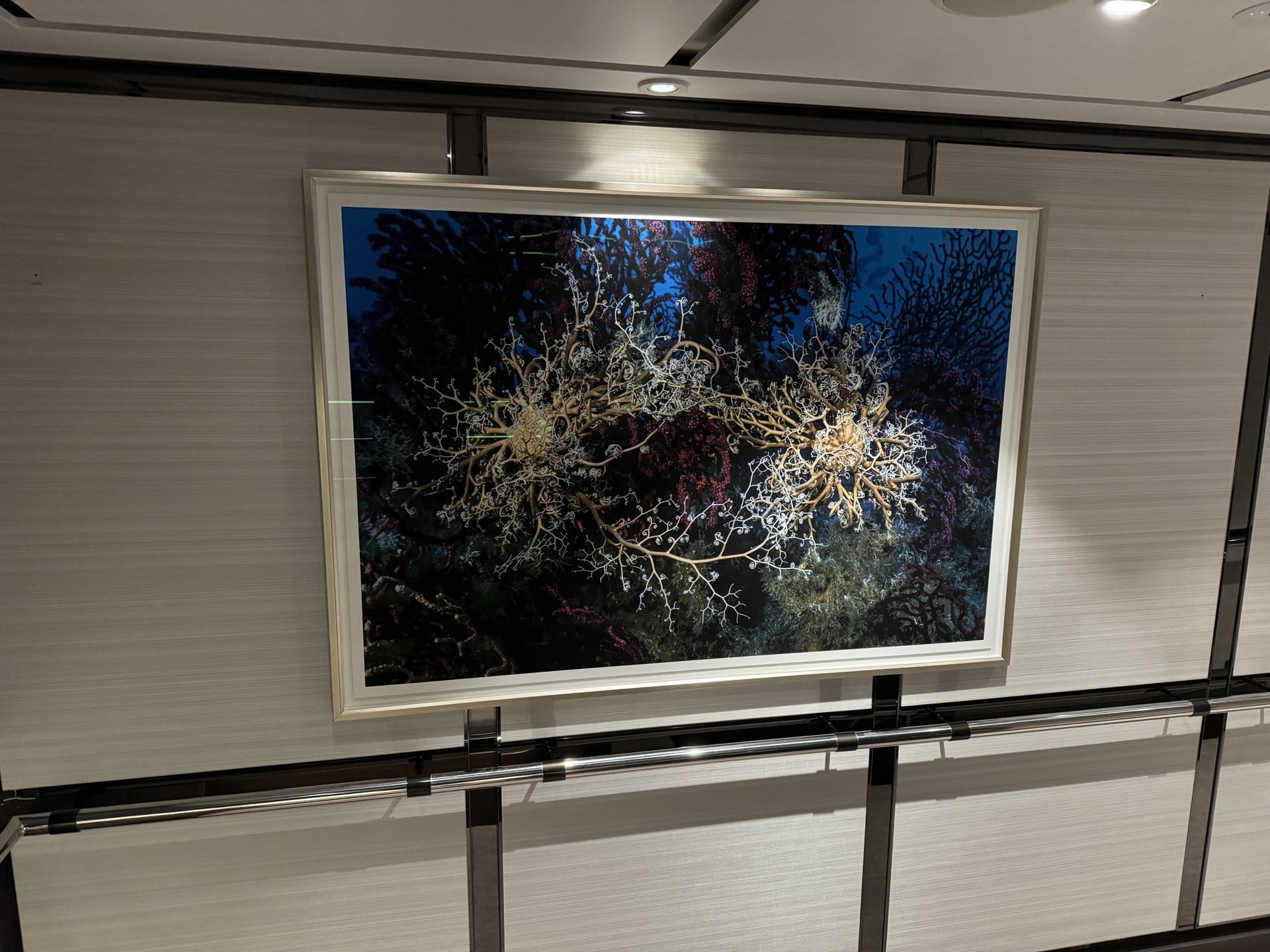 We were recently given the opportunity to frame art for all the rooms aboard a cruise ship on a Mediterranean trip. In our studio, we framed all the artworks that were delivered. Then we shipped everything to Nice, where it was loaded onto the cruise ship. At night during the cruise - the guests were not allowed to be disturbed - we hung the paintings in all the departures.