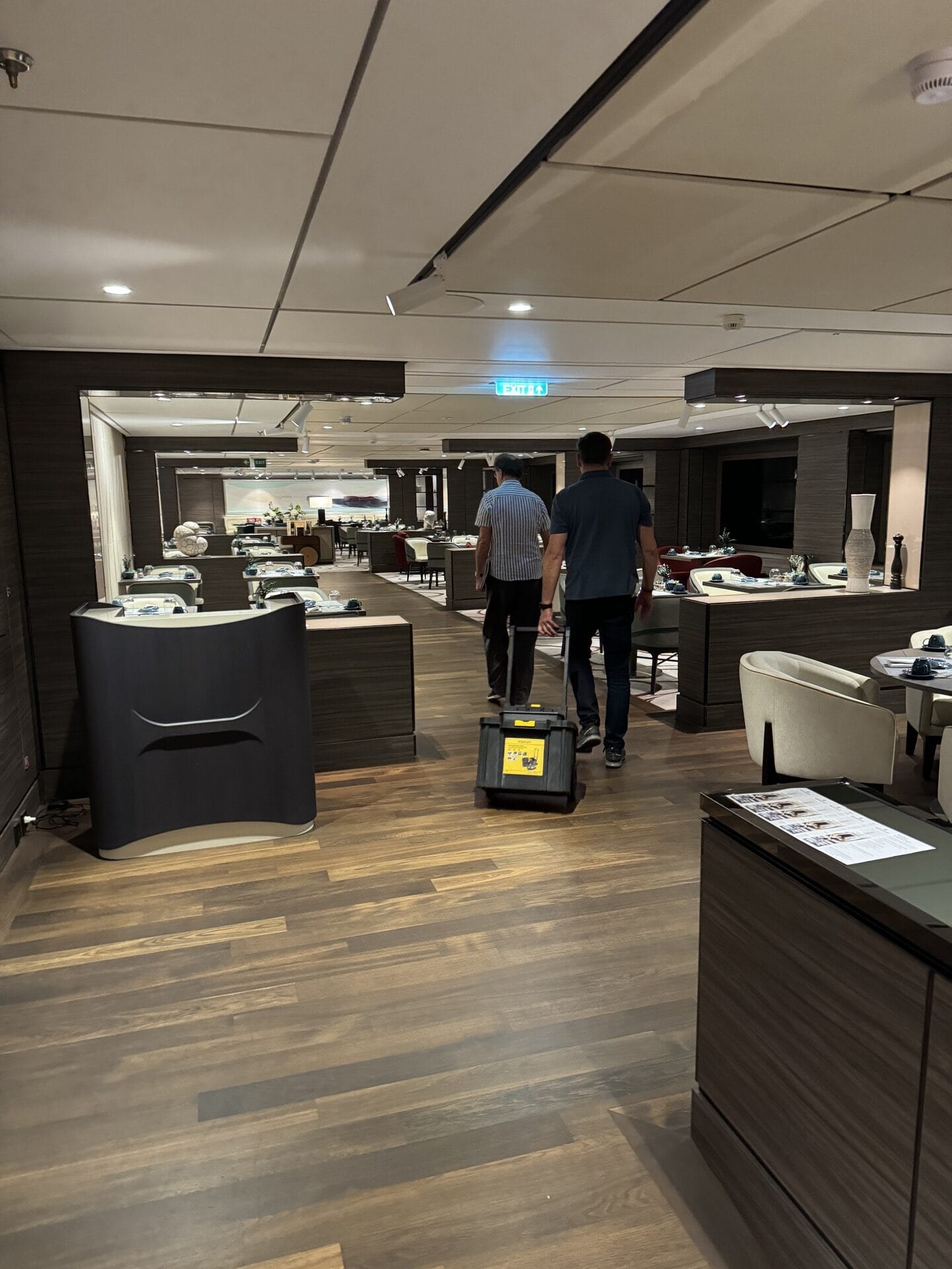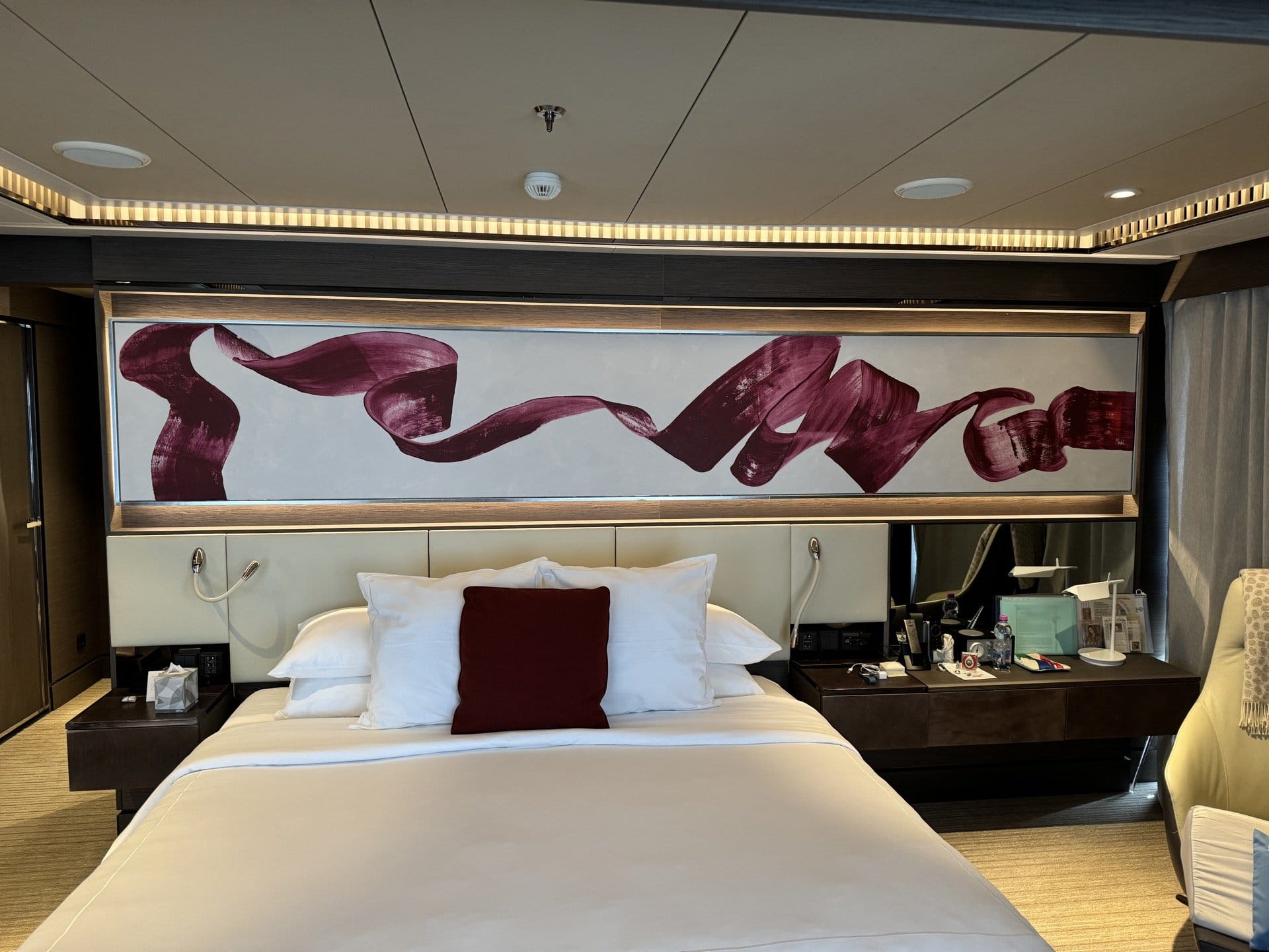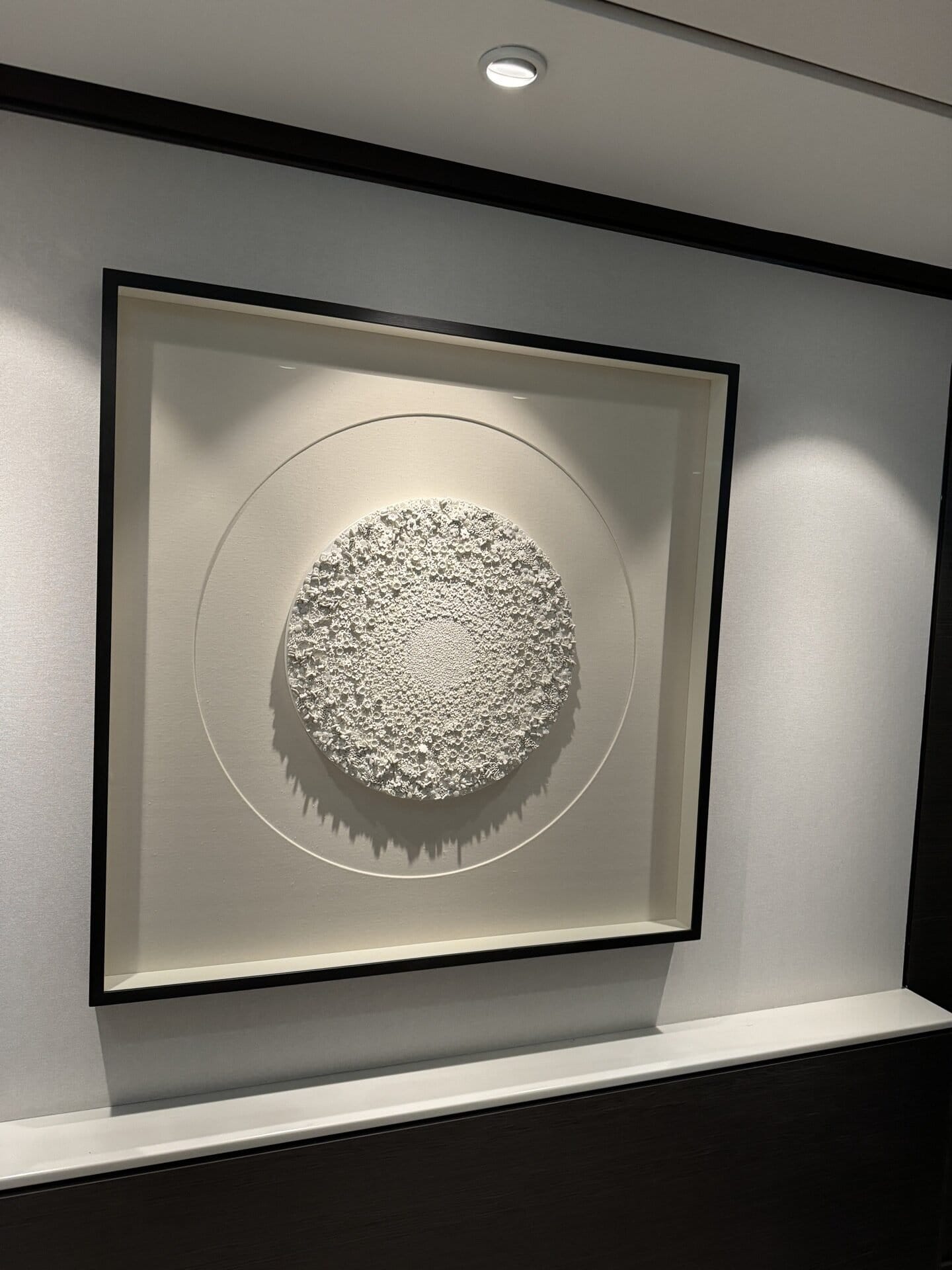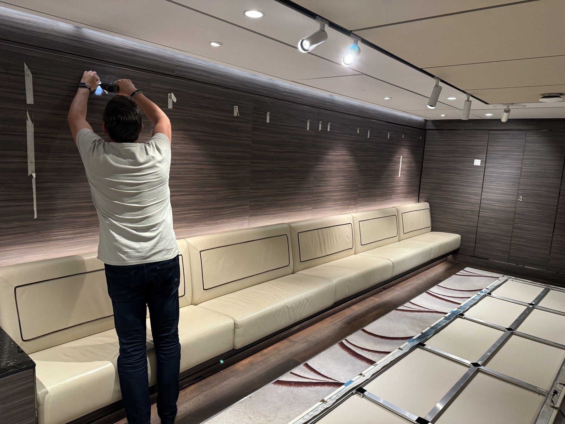 We were recently given the opportunity to frame art for all the rooms aboard a cruise ship on a Mediterranean trip. In our studio, we framed all the artworks that were delivered. Then we shipped everything to Nice, where it was loaded onto the cruise ship. At night during the cruise - the guests were not allowed to be disturbed - we hung the paintings in all the departures.